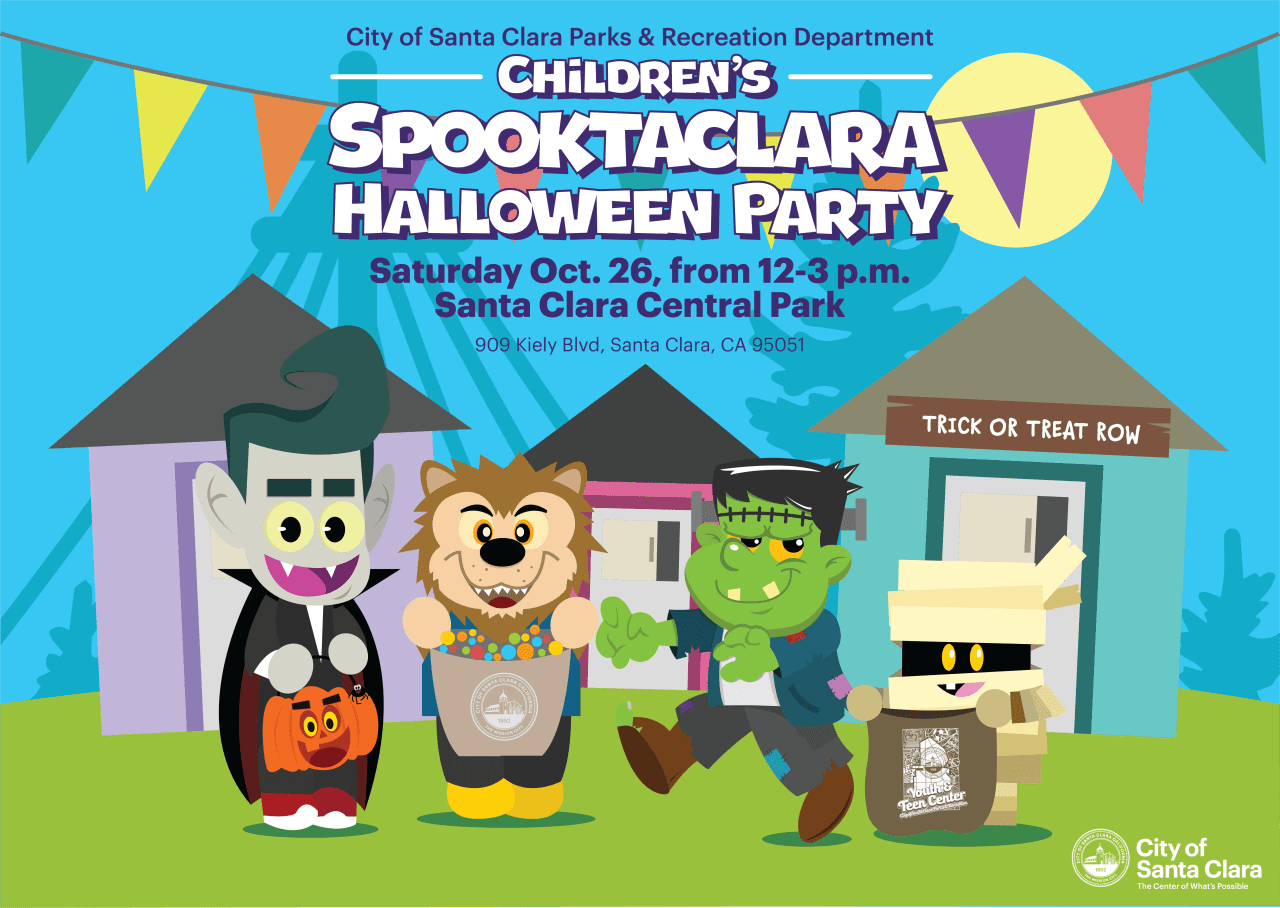 A family-friendly Santa Clara tradition! Put on your costumes and have fun at the Children’s SpooktaClara Halloween Party! Join us Saturday, Oct. 25 from 12-4 p.m. at Central Park, 909 Kiely Blvd., Santa Clara, CA 95051. The event will take place on the Meadow Area by Bob Fatjo Field.