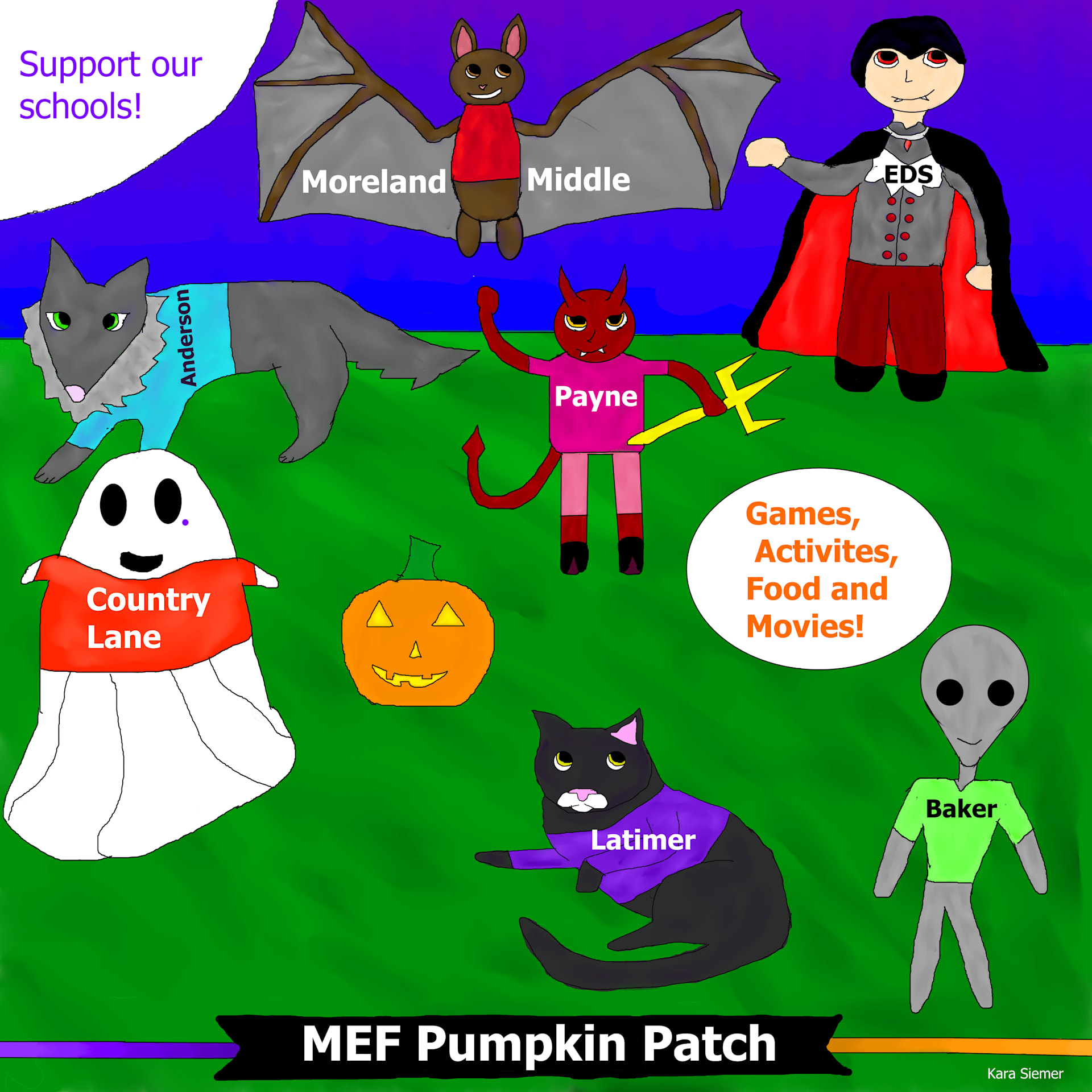 We are a 100% volunteer staffed fundraiser patch & haunted trail. MEF Pumpkin Patch is a seasonal tradition which is a collaboration between Moreland School District & Moreland Education Foundation to create a magical Pumpkin Patch where families can play games, get spooked, work on crafts, be adventurous or watch a family friendly Halloween movie. We are open to all.